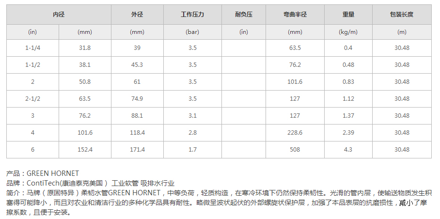 用途:中等負(fù)荷,輕質(zhì)構(gòu)造,在寒冷環(huán)境下仍然保持柔韌性。光滑的管內(nèi)層,使輸送物質(zhì)發(fā)生積塞得可能降小,而且對(duì)農(nóng)業(yè)和清潔行業(yè)的多種化學(xué)品具有耐性。略微呈波狀起伏的外部螺旋狀保護(hù)層,加強(qiáng)了本品表層的抗磨損性,減小了摩擦系數(shù),且便于安裝。本品通常的應(yīng)用領(lǐng)域包括廢品處理、建筑、農(nóng)業(yè)、海上作業(yè)和制造業(yè)